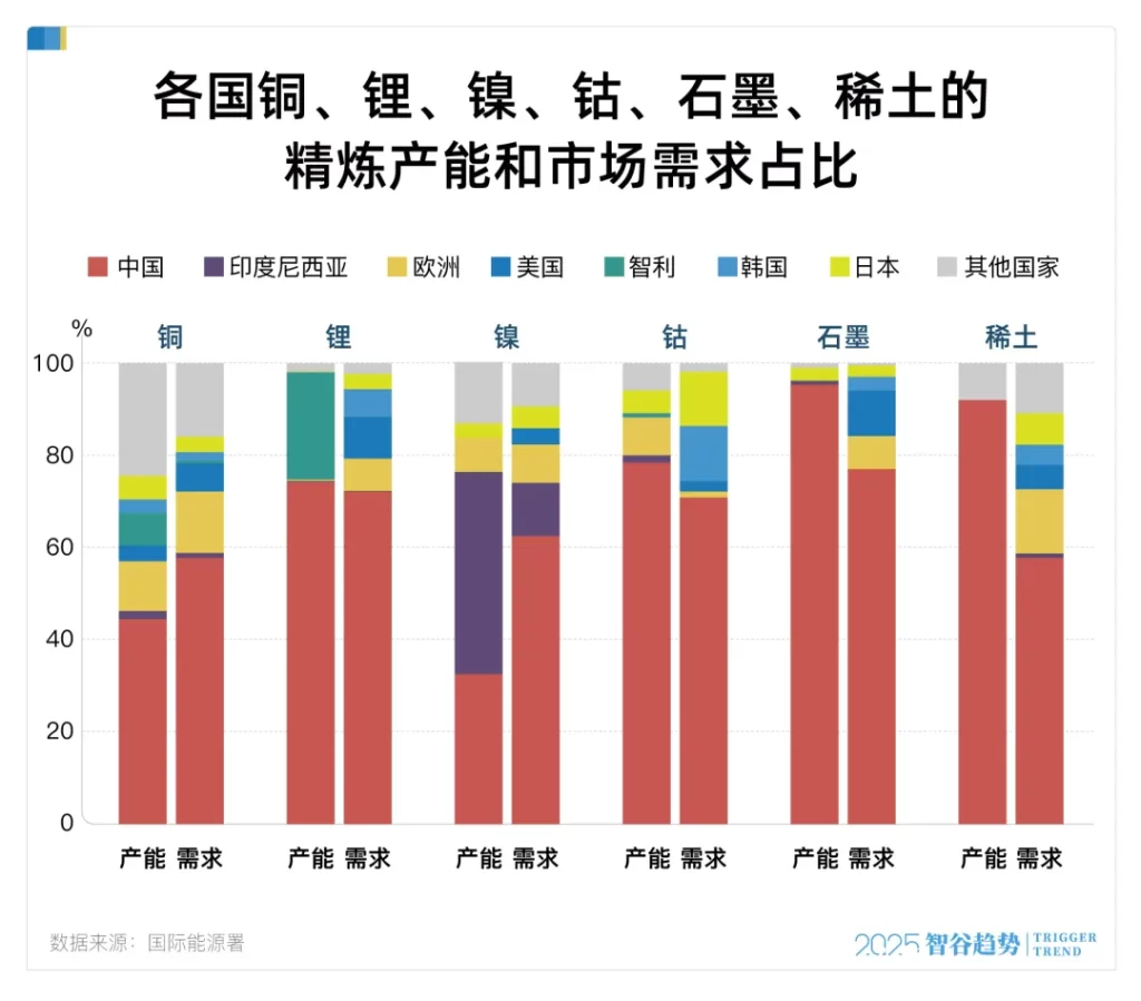 与2020年相比,中国2024年的矿种精炼集中度进一步上升,筑起一道道“铜墙铁壁”。