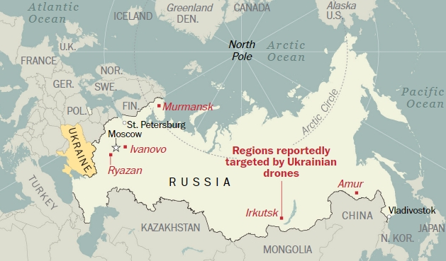 《华盛顿邮报》当天报道称,俄罗斯境内当天有五个空军基地遭遇大规模无人机袭击,乌克兰安全局已宣称对此次袭击负责,这是乌军自俄乌冲突爆发以来对俄领土发动的最具渗透性的袭击之一。俄罗斯国防部则认定这是一次“恐怖袭击”,俄方还在一份声明中证实,包括摩尔曼斯克州、伊尔库茨克州、伊万诺沃州、梁赞州和阿穆尔州的机场遇袭,且首次有西伯利亚地区的军事基地遭无人机袭击。