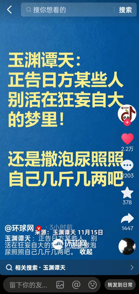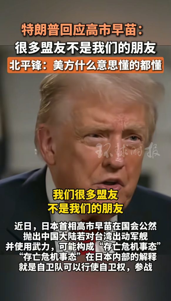 不得不说,高市这老娘们儿真能作,知道她是日本右翼政坛的替死鬼,知道她是无数日本右翼和日本社会向右转的话事人和发声筒,也没想到她能在上任不到一个月就把周边邻国关系降至历届最低点。甚至到了剑拔弩张的境地。这就像家里刚当家的八婆,上来就把邻里间关系搞僵搞砸;还得家里清醒的出来帮着平。真能折腾,也是能耐。很好奇高市早苗家庭和不和,是否也是鸡飞狗跳。