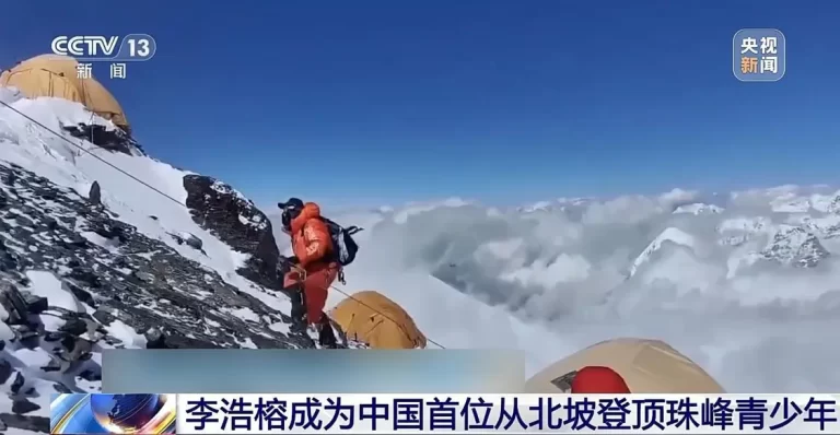 据央视新闻5月28日报道,5月25日,北京第八十中学学生李浩榕在当天早晨6点39分成功登顶珠穆朗玛峰,成为中国首位从北坡登顶珠峰的青少年。
