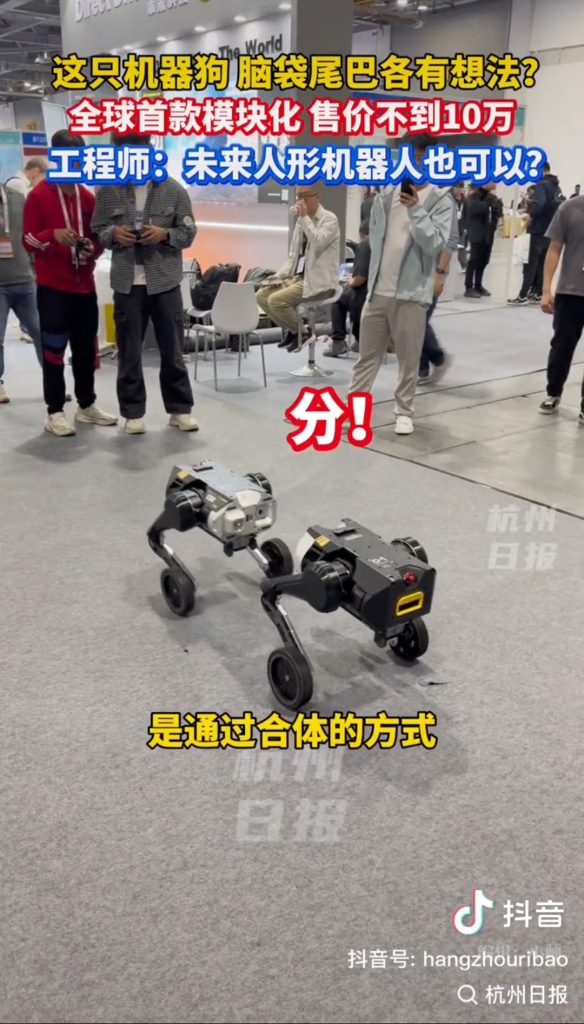 据悉,这款本末科技重磅发布的新一代全球唯一能自由拼接的机器人 D1 拼接之后形成一体,爆发力、灵活度极强,性能与机器狗相媲美。可动态负载 100 公斤,在复杂环境下适应性极强,可轻松跨越障碍,现实复杂地形下翻滚、避障、起身、回转等高难度动作,具有惊人的稳定性。此机器人采用整机模块化设计,稳定性和越野性能得到全面提升,被网友称作 “ 现实版变形金刚 ”。