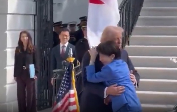 19日,美国总统唐纳德·川普与日本首相高市早苗在白宫举行了首脑会谈,距离2025年10月的上一次会谈时隔5个月,也是高市就任后首次访美。川普亲自出门迎接,高市下车后扑进川普怀中,并轻拍川普的手臂问候。高市称呼川普为“唐纳德”,并表示:“我坚信只有你能实现世界和平。”川普评价高市在议会选举中取得压胜称:“她是极具人气的强势女性”,“举行了日本历史上最成功的选举”,“我感到非常骄傲。”