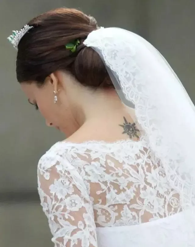 婚礼当天,穿着婚纱的索菲亚展示了后背上的醒目纹身,似乎想要告诉众人,她没觉得自己的过去有什么不光彩,无需洗白。