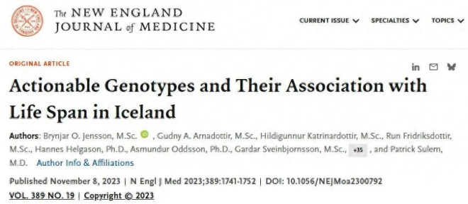 该研究发现,4.5%的冰岛人基因内携带美国医学遗传学和基因组学学会指南里的一个或多个可操作基因型,这些基因型所致的疾病包括有心血管疾病、癌症以及代谢疾病。携带基因的人相较于非携带者寿命更短,其中又以癌症易感基因型受到的影响最大,相较于非携带者寿命平均缩短了4年。
