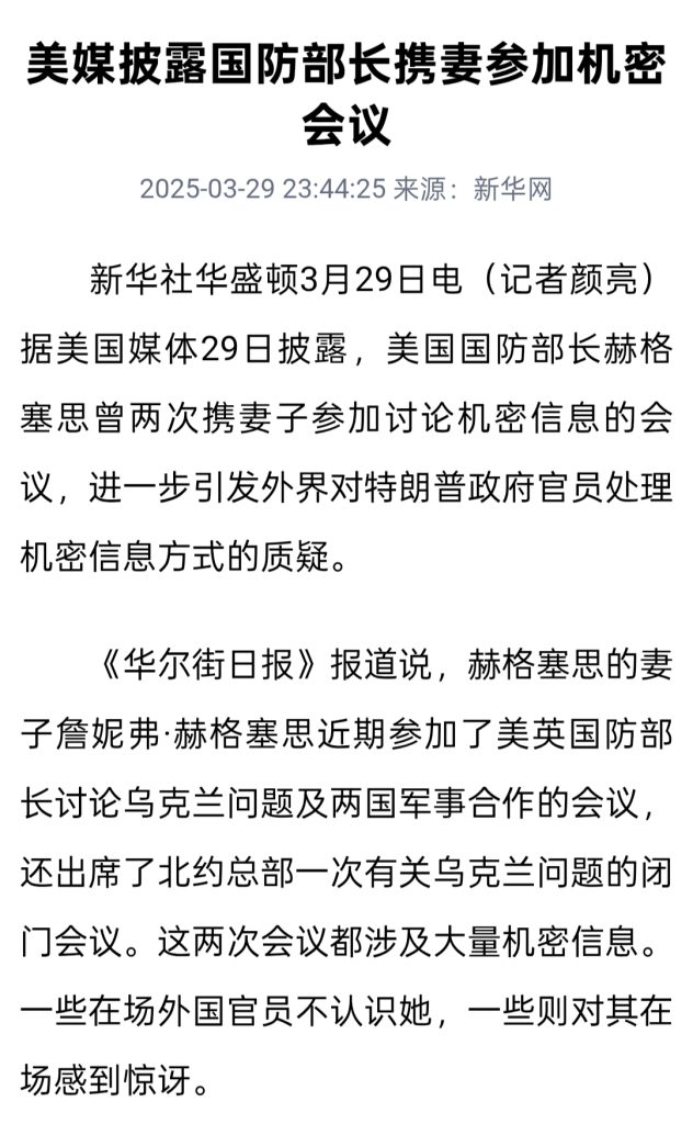是啊,毕竟美国总统都能一声令下把将近 140 多年的白宫东侧建筑拆毁,白宫浴室装修说换就换,马桶都放窗户边儿。美战争部长赫格塞思都能带媳妇儿参加绝密会议,一个局长带女友坐公务飞机怎么了 ?反正放着也是放着,给你发动发动,不然就坏了。不能感恩。
