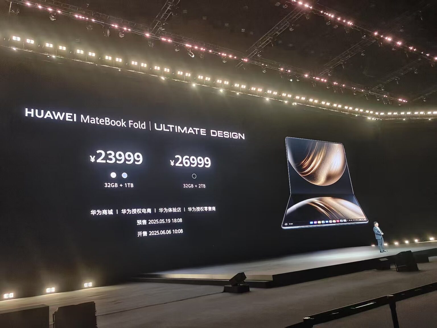 华为MateBook Fold非凡大师将于今晚18:08开启预售,6月6日10:08正式开售,32GB + 1TB版本售价23999元,32GB + 2TB版本售价26999元。