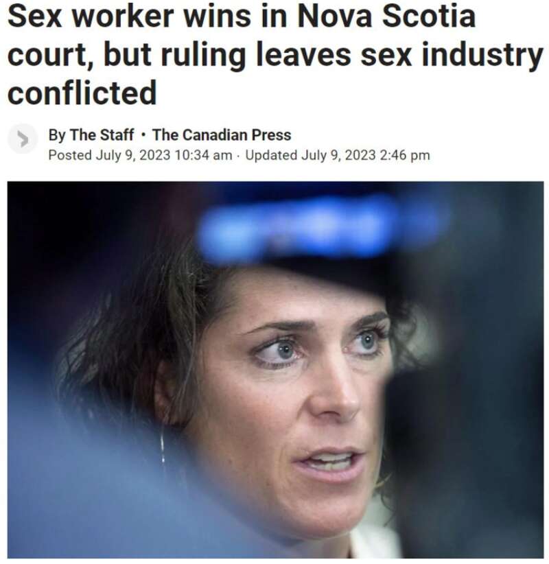 一项加拿大首例法律判决中,一名哈利法克斯性工作者成功起诉一名客户未足额支付服务费用,小额法庭法官判嫖客必须为其接受的7个小时服务支付2100元,该判决引发了专家对该行业的法律探讨。