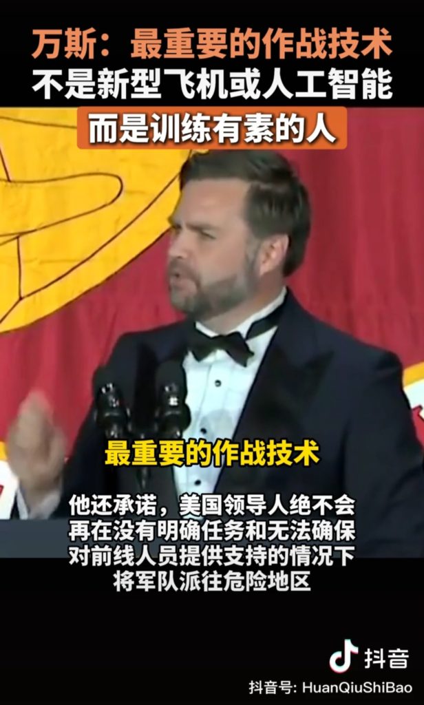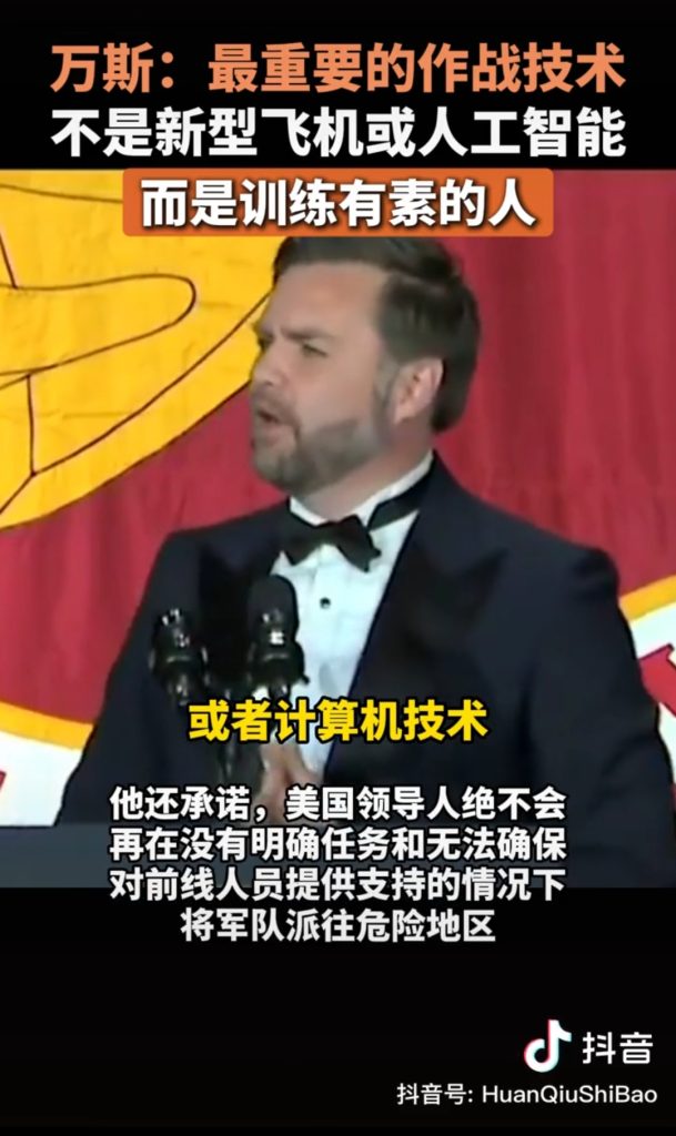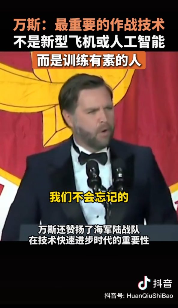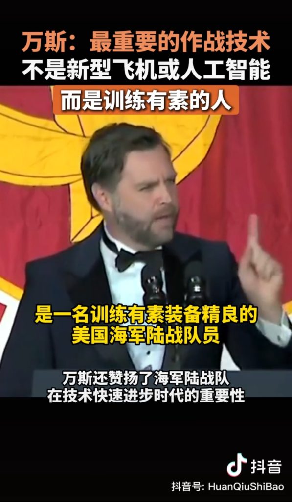 近日,美国副总统万斯在美国海军陆战队成立 250 周年庆典讲话时声称:“ 最重要的技术装备不是新型飞机,最重要的作战技术不是人工智能,或者计算机技术;最重要的作战技术,是一名训练有素装备精良的美国海军陆战队员。 ”