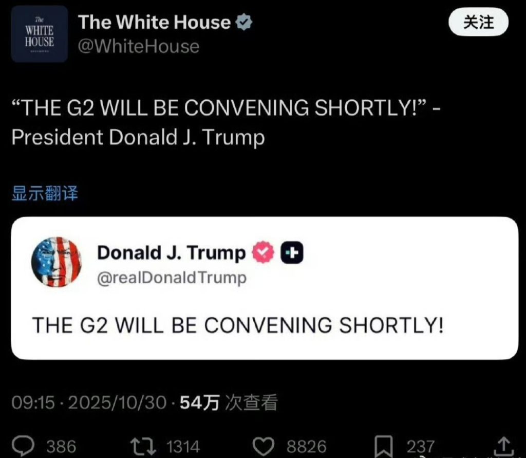 刚刚结束不久的 APEC 会议,中美两国领导人会晤并达成一系列共识,会晤取得较大进展。特朗普更在其社交账号公开宣称 “ G2 ”,此举令中美双方网友高兴,也令一些曾在美国面前充当马前卒、反华急前锋的 “ 小弟 ” 冷汗直流。