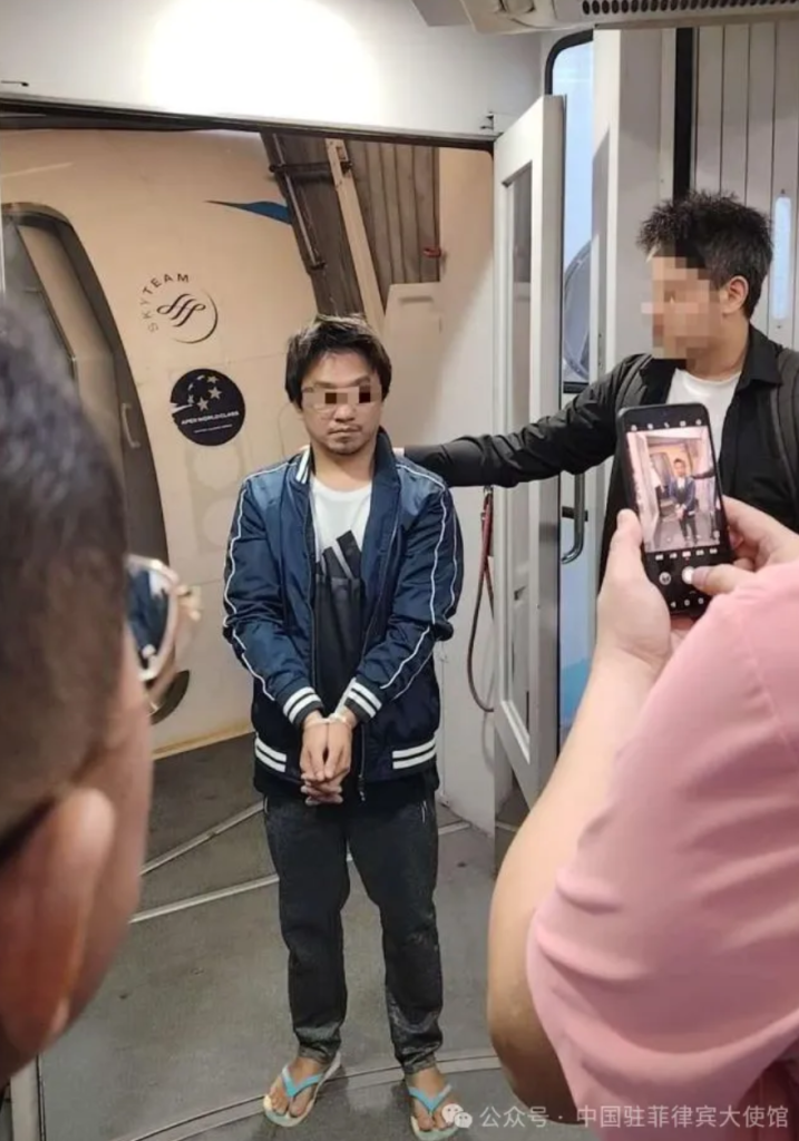 据微信公众号“中国驻菲律宾大使馆”22日消息,近日,中国和菲律宾执法部门密切合作,成功抓获涉绑架杀人嫌疑人施纯芳。12月22日,两国执法人员将施押解上飞机,遣返回国。