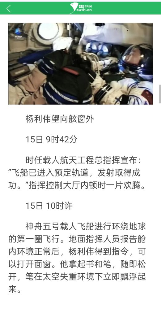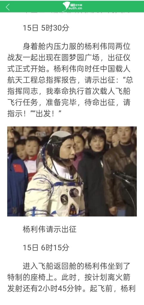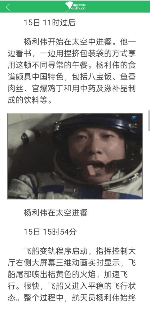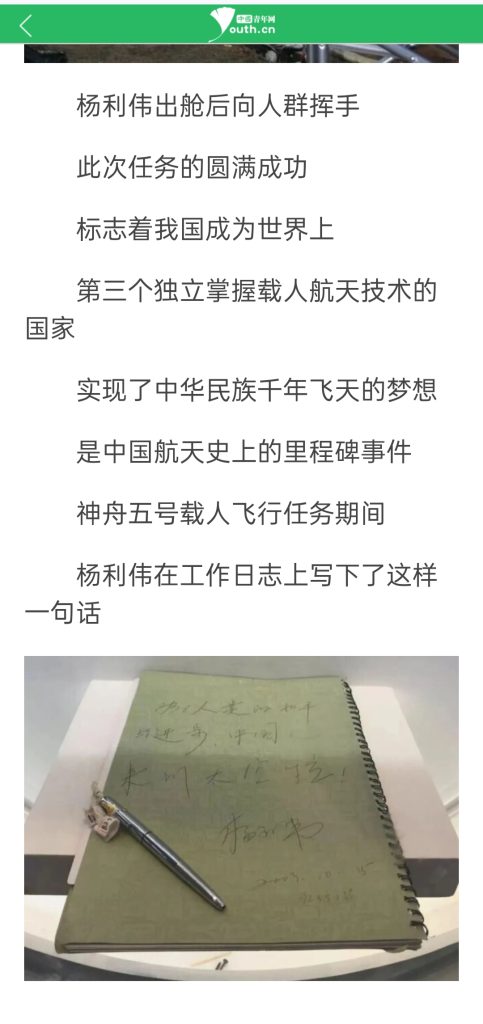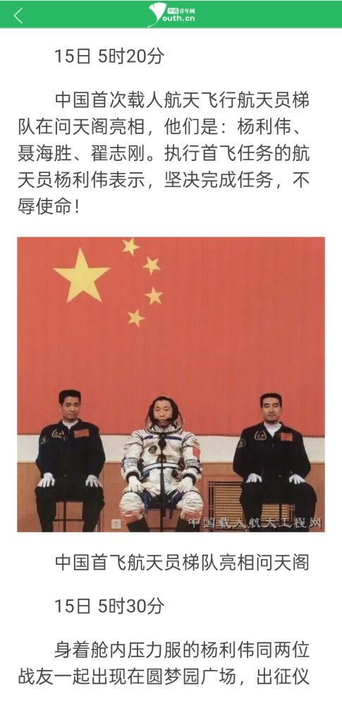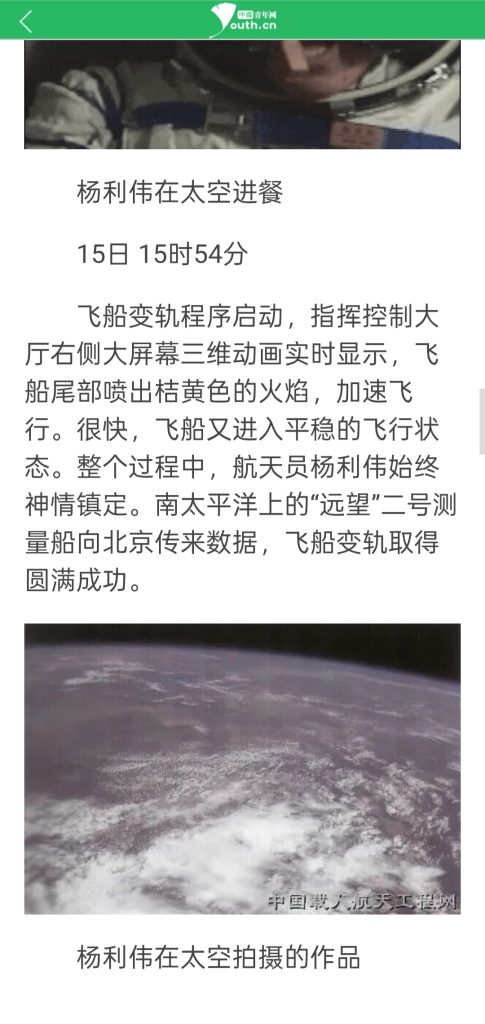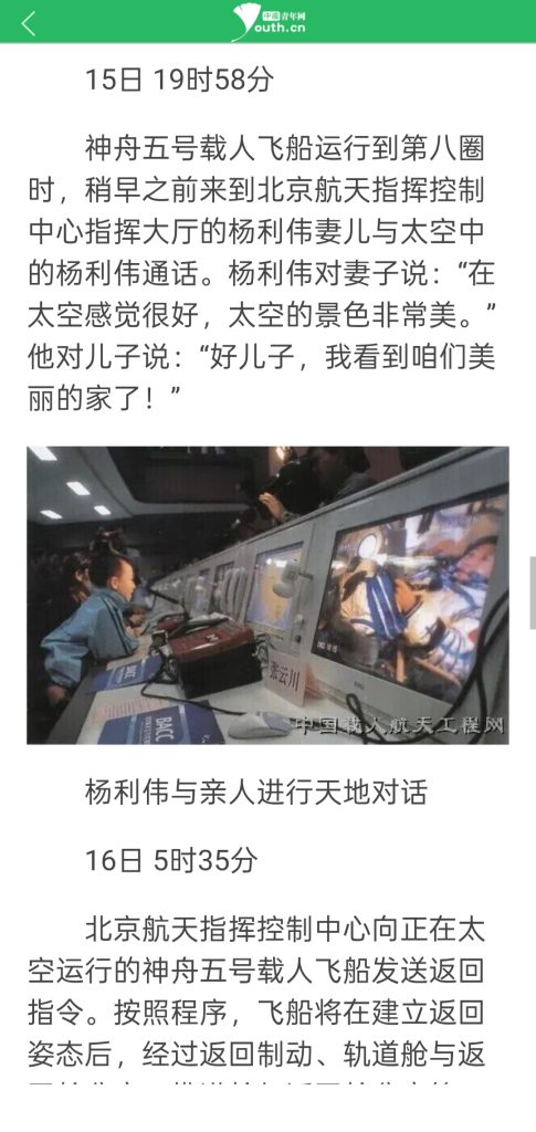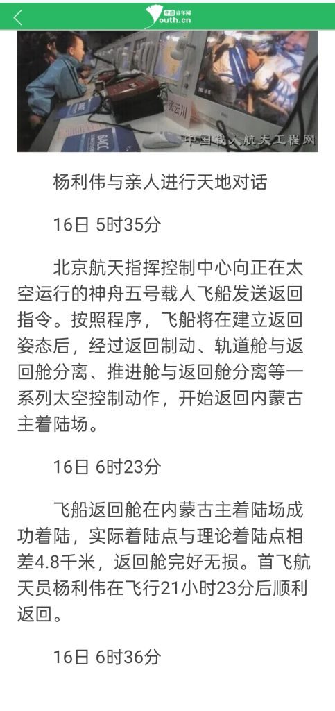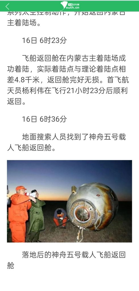 神舟五号载人航天任务过程 ↓ 来源:中国青年网