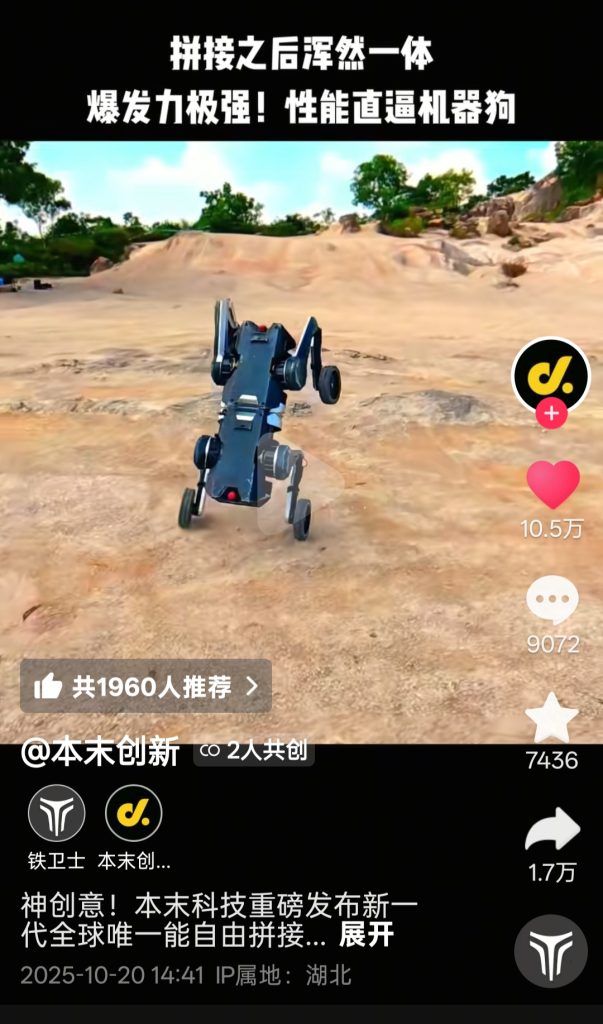 10 月 20 日,中国本末科技发布全球首款唯一能自由拼接的机器人 D1,引发各界关注。