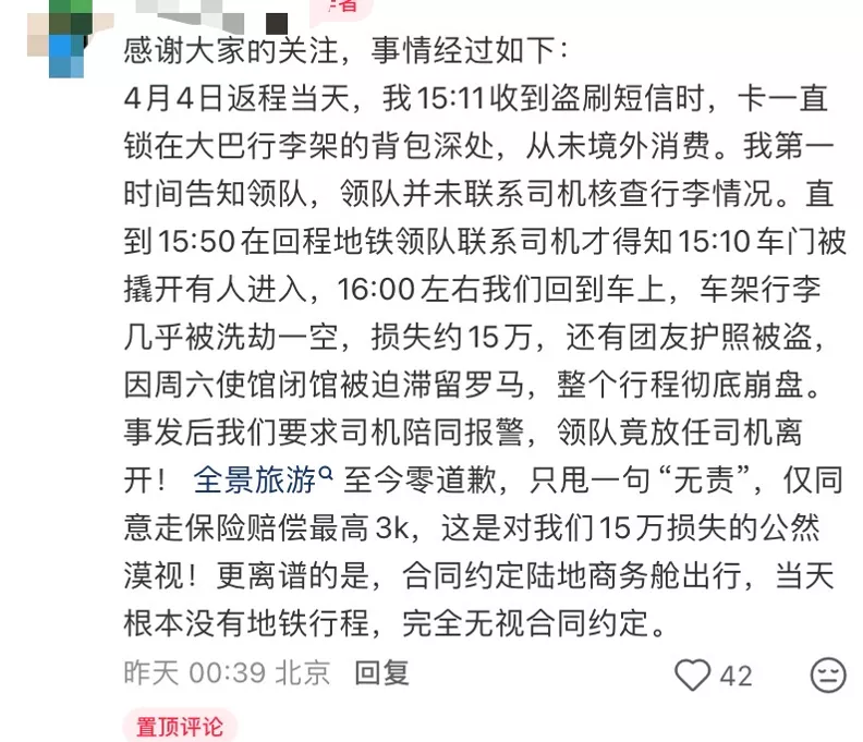 游客一方的说法很直接:这趟行程几乎每天都要更换酒店,行李基本只能统一放在大巴上,这在跟团旅行中几乎是“默认安排”。既然如此,车辆就理应有人看管。