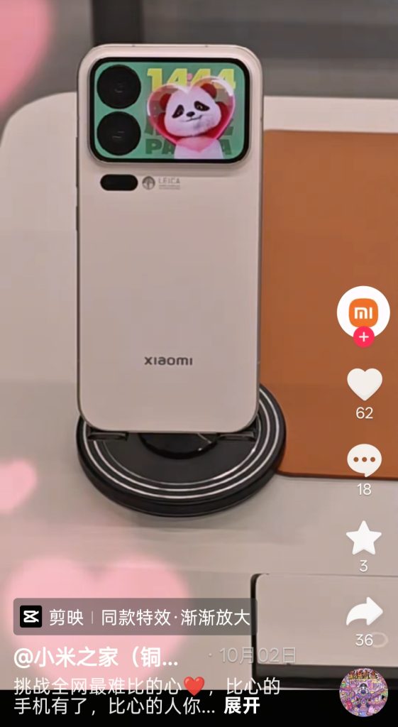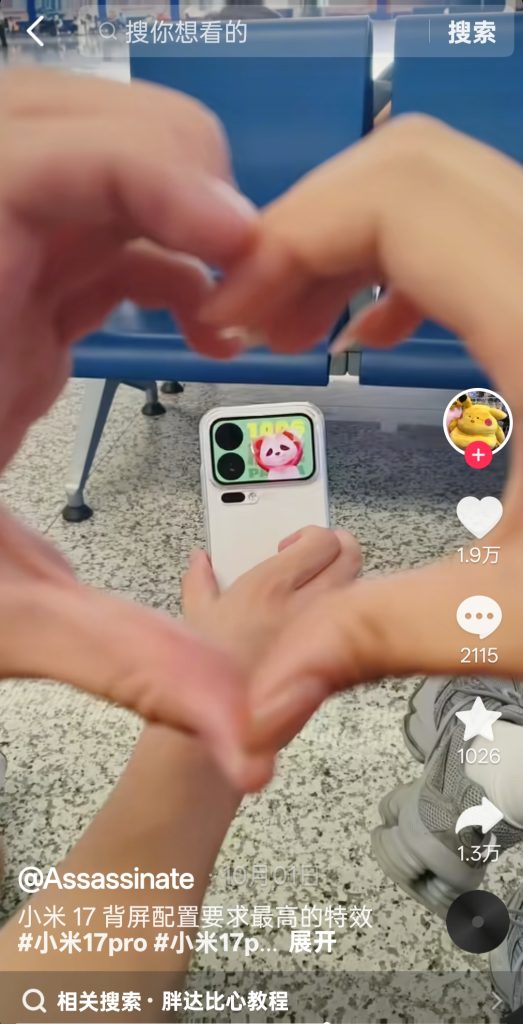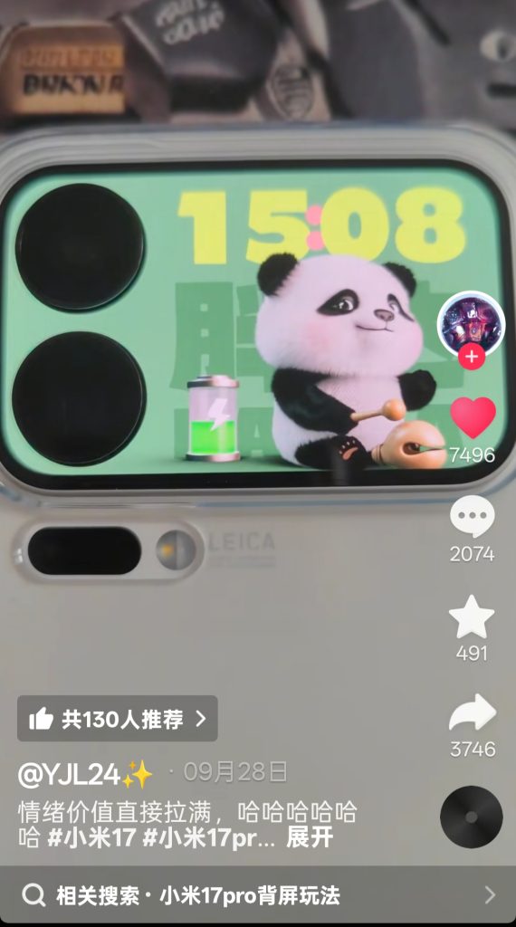分享 Facebook Twitter Email 随着小米17Pro的震撼发布,越来越多的买家被小米17Pro背屏上的可爱小熊猫深深吸引。 小米17Pro背屏小熊猫比心 据抖音网友和小米官方演示,当人们对着小米17Pro背屏上的小熊猫比心时,小熊猫也会比出爱心回应,并伴随爱心特效,趣味及暖意十足。 抖音网友展示的小米17Pro背屏小熊猫比心 经介绍获悉,小米17Pro实现了可触控背屏,不仅可随意更换背屏壁纸、特效,更配备了复古游戏机手机壳,化身童年回忆时光机,给买家带来了无尽的手机使用体验。相比无背屏的苹果17,小米17Pro中国售价比苹果17便宜了 4000 元人民币。 小米17Pro游戏掌机手机壳 小米17Pro背屏小熊猫 本文作者:九思 图片来源自抖音 分享到: 中国 创新 科技