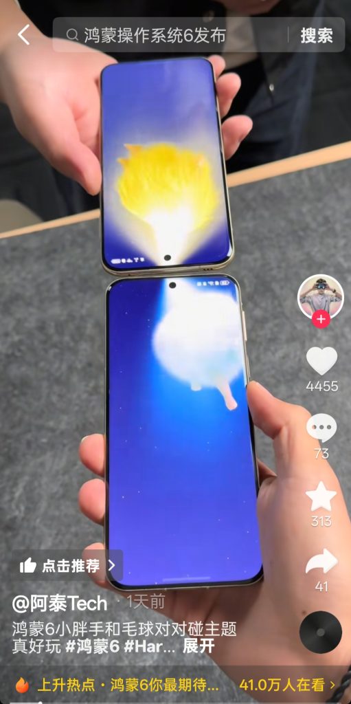据悉,鸿蒙6 采用鸿蒙星河互联架构,传输速率达到160MB/s,支持跨端分享、多屏协作和应用接续。“ 碰一碰 ”功能更是支持超过 60 个应用,新增一碰多分享和游戏组队等互动体验,以及手机与电脑屏幕的轻碰分享,支持与苹果设备的近场互传,无需手机流量。