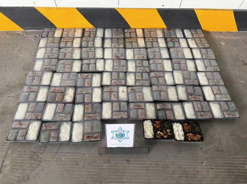 据澳门海关官网4月25日消息,4月22日,澳门海关于横琴口岸截获1宗企图偷运未经检疫熟食入境的个案,共检获约51公斤的熟食盒饭。