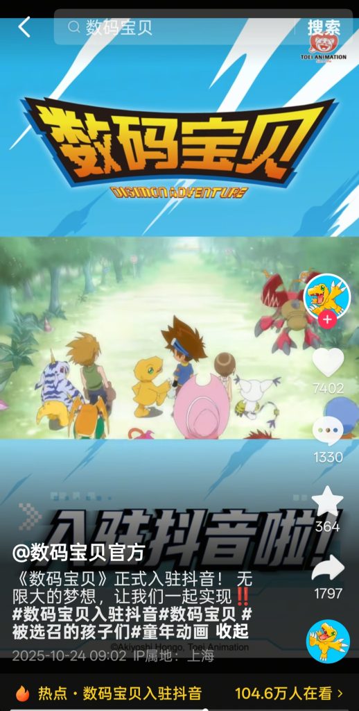 • 童年回归 !今天《 数码宝贝 》官方入驻抖音 !