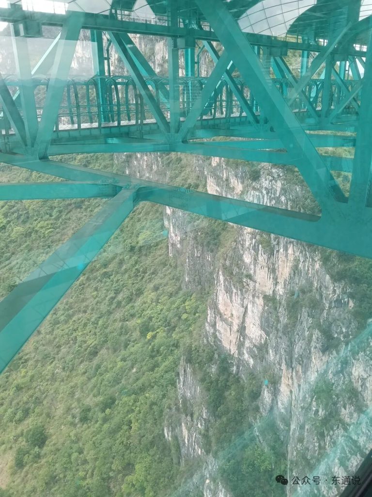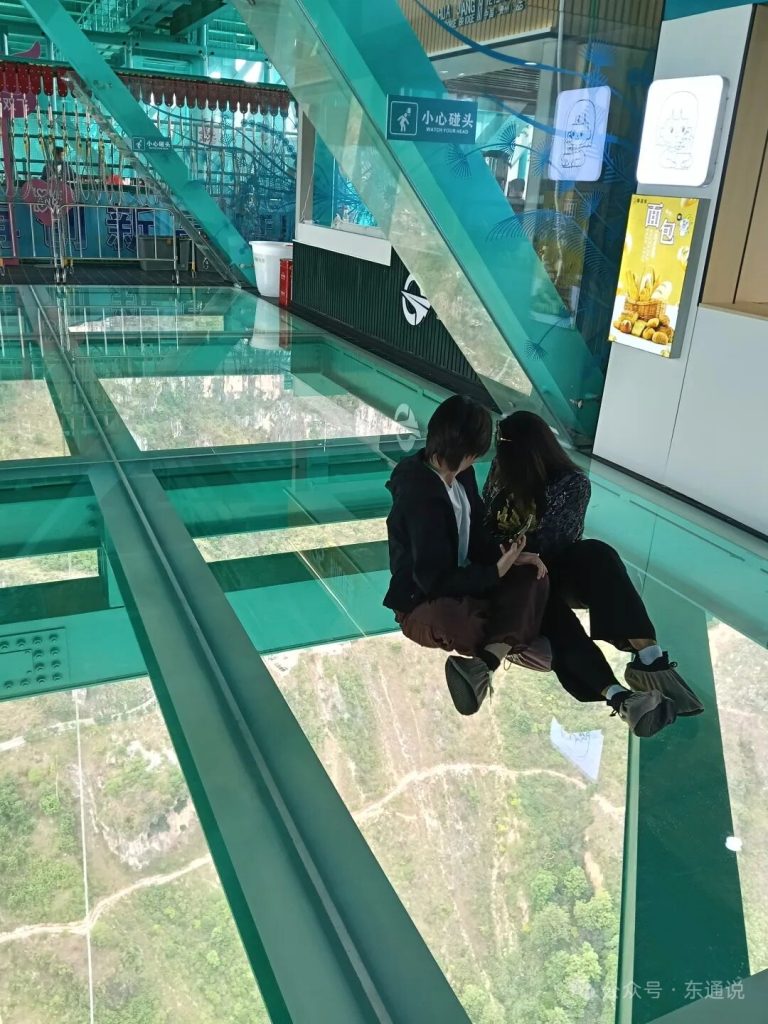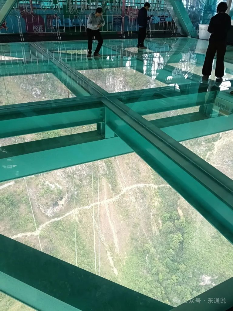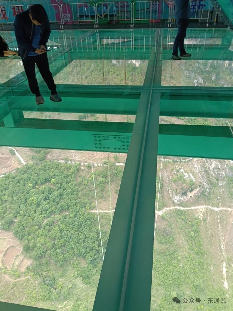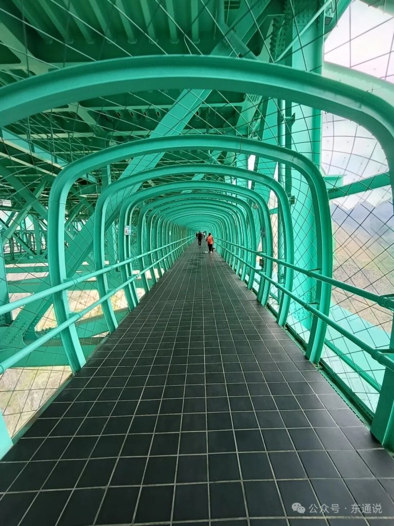 修长的栈道绵延不绝,仿佛永远走不到尽头。玻璃栈道令人胆战心惊,紧张又刺激。栈道上方车辆飞驶而过,轰鸣声不绝于耳,微微震颤仿佛巨兽踱步踏过,有险而无惊。